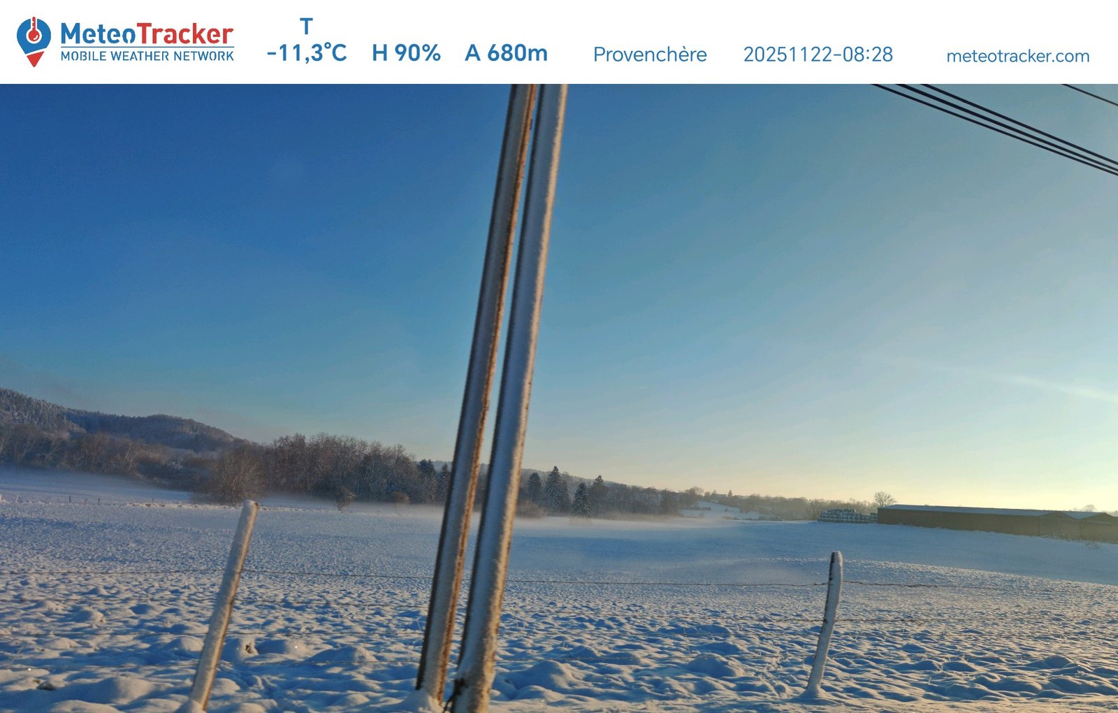 Published in: Provenchère Author info@uniqueline.agency Published on: 22/01/2026 Provenchère22 November 2025 | 07:28:27T -11.3 °C | HR 90% | A 680 m | HDX -15.5 °CLink alla sessioneCreato da: Votre météo du doubs en direct